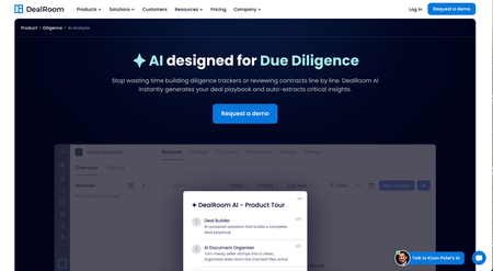 DealRoom has integrated AI features into its project management and pipeline tracking platform. Includes automated diligence request tracking, document categorization, and workflow intelligence. More of a deal execution platform than a sourcing tool.